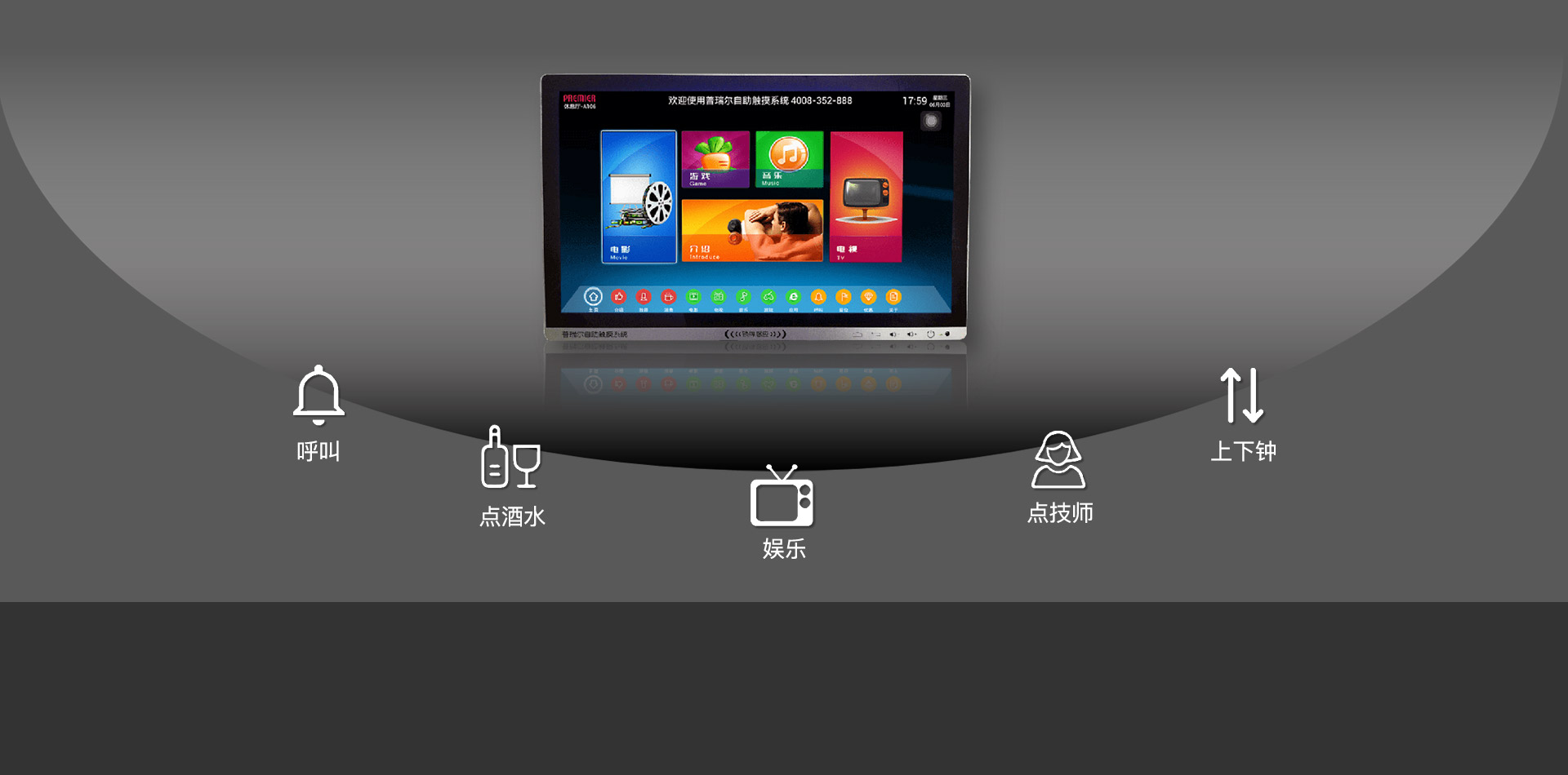 温泉/洗浴行业休闲区的沙发电视是客人休息时最重要的设备,支点智能电视系统除了满足最重要的娱乐功能之外,还可以实现在电视上刷手牌进行酒水下单、呼叫、点技师、以及技师上下钟等功能