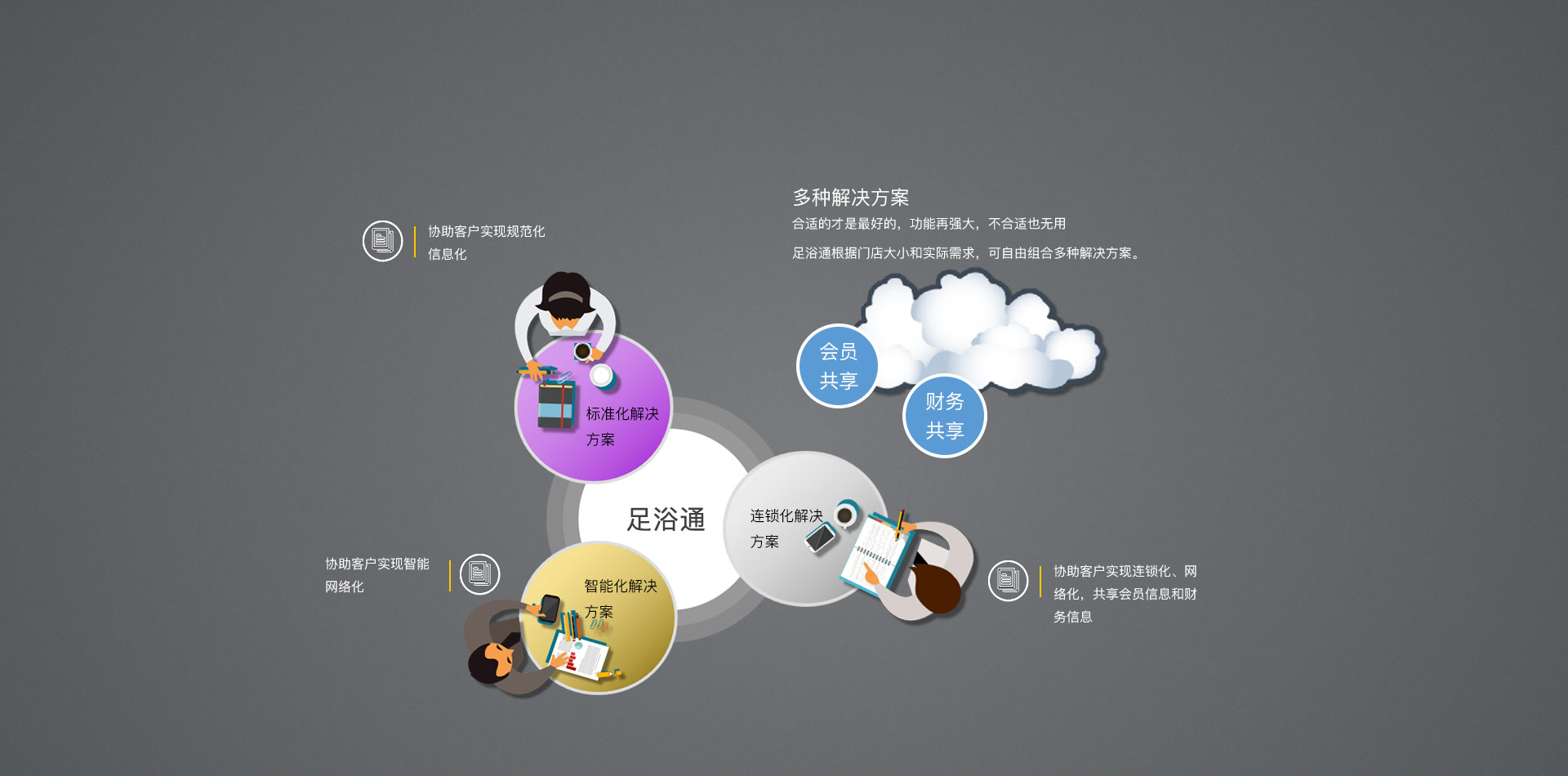 休闲行业的特点是24小时营业,并且业务复杂,接待流量大,系统稍有不慎就有可能给企业带领巨大的经济损失,随着互联网和网络支付的逐渐普及,系统除了稳定以外,还需要适应灵活多变的营销手段,拥有互联网的属性,结合这些特点,支点足浴通采用C/B/S的系统构架,将C/S构架的稳定性和Saas构架的便利性导入休闲行业,聚焦“智能化管理+数字化营销”两大核心价值,专注构建休闲行业的智能管理系统和云平台。以收银系统为中心,重构门店“人、钱、客 ”, 对休闲行业财务收银、客户管理、营销推广等传统运营环节进行全方位改造升级。依托移动互联网智能数字云科技,致力为传统门店打造全新的业务管理系统。